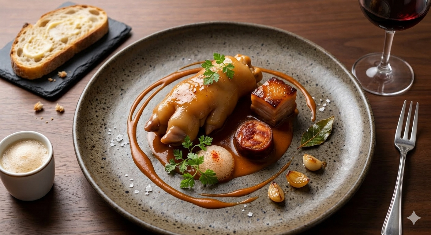 Codillo de Jamón asado a baja temperatura y glaseado con su jugo.