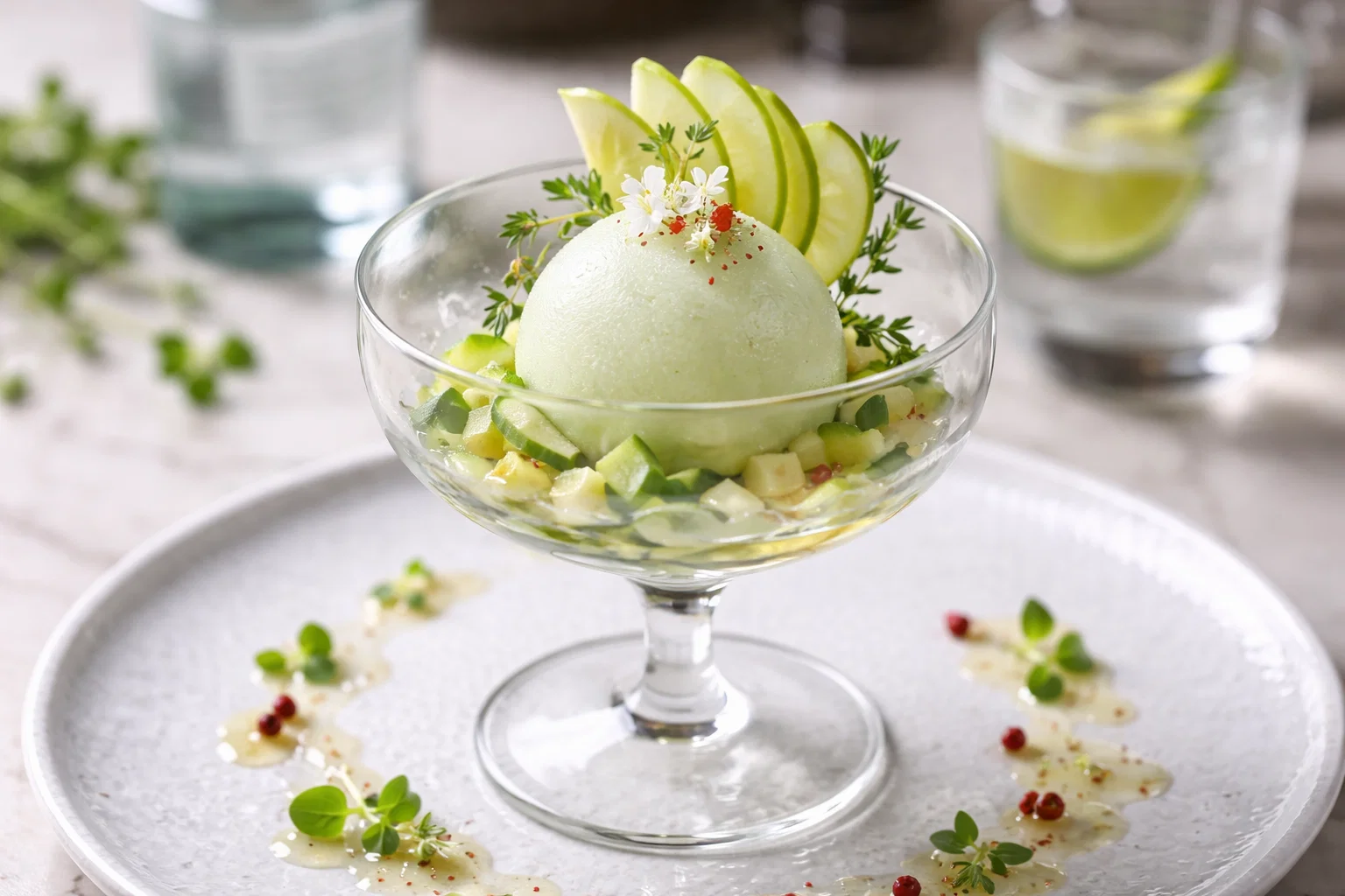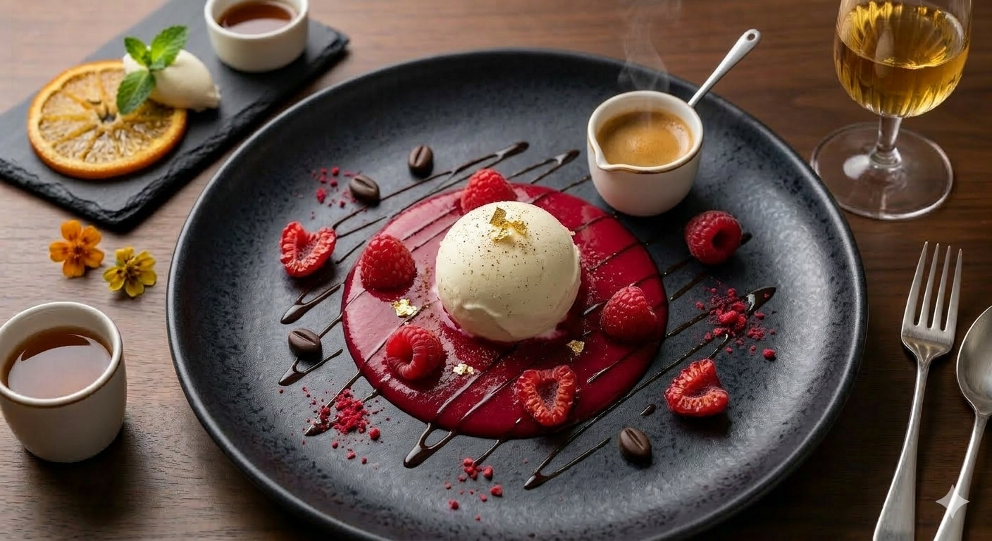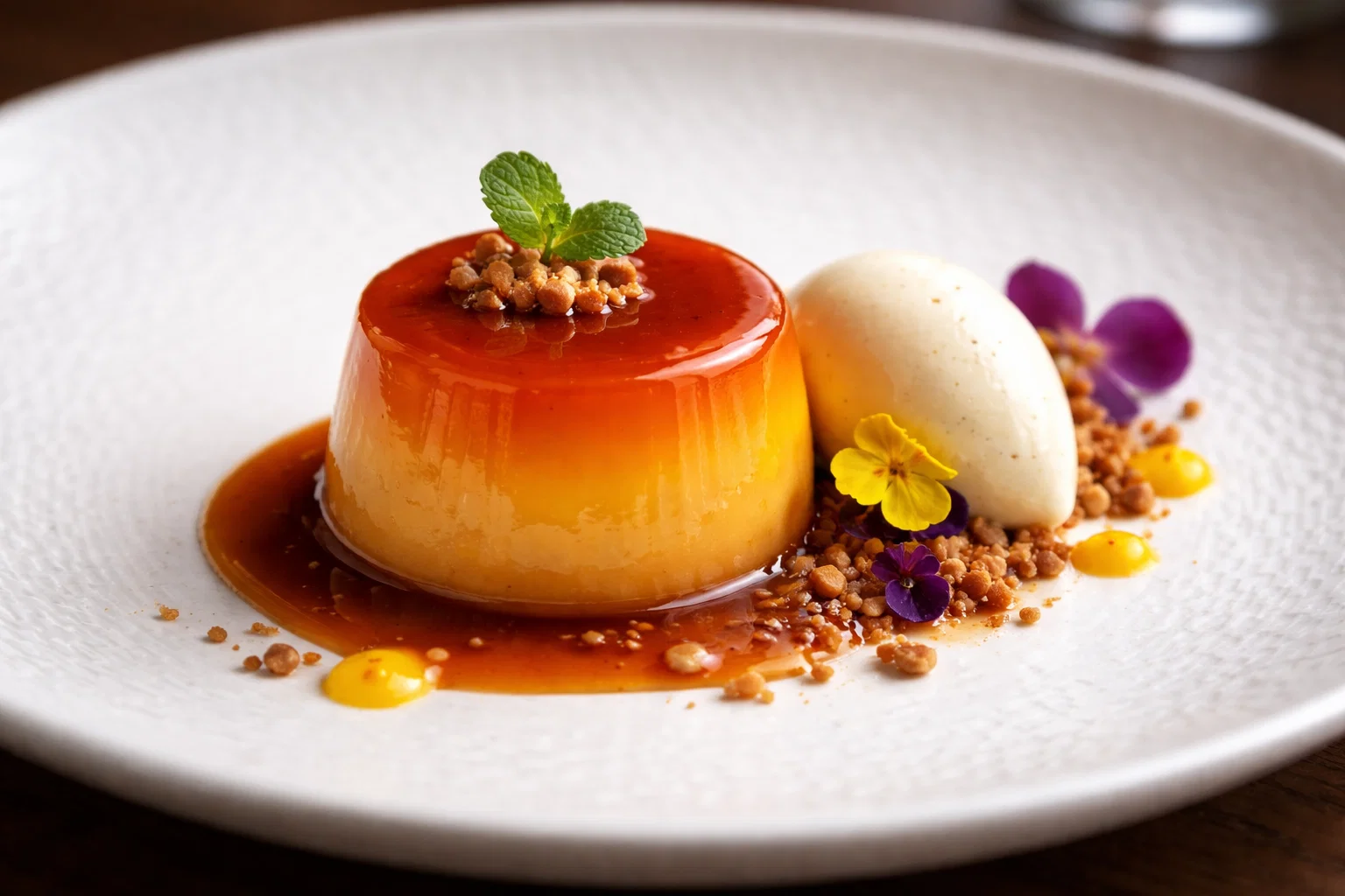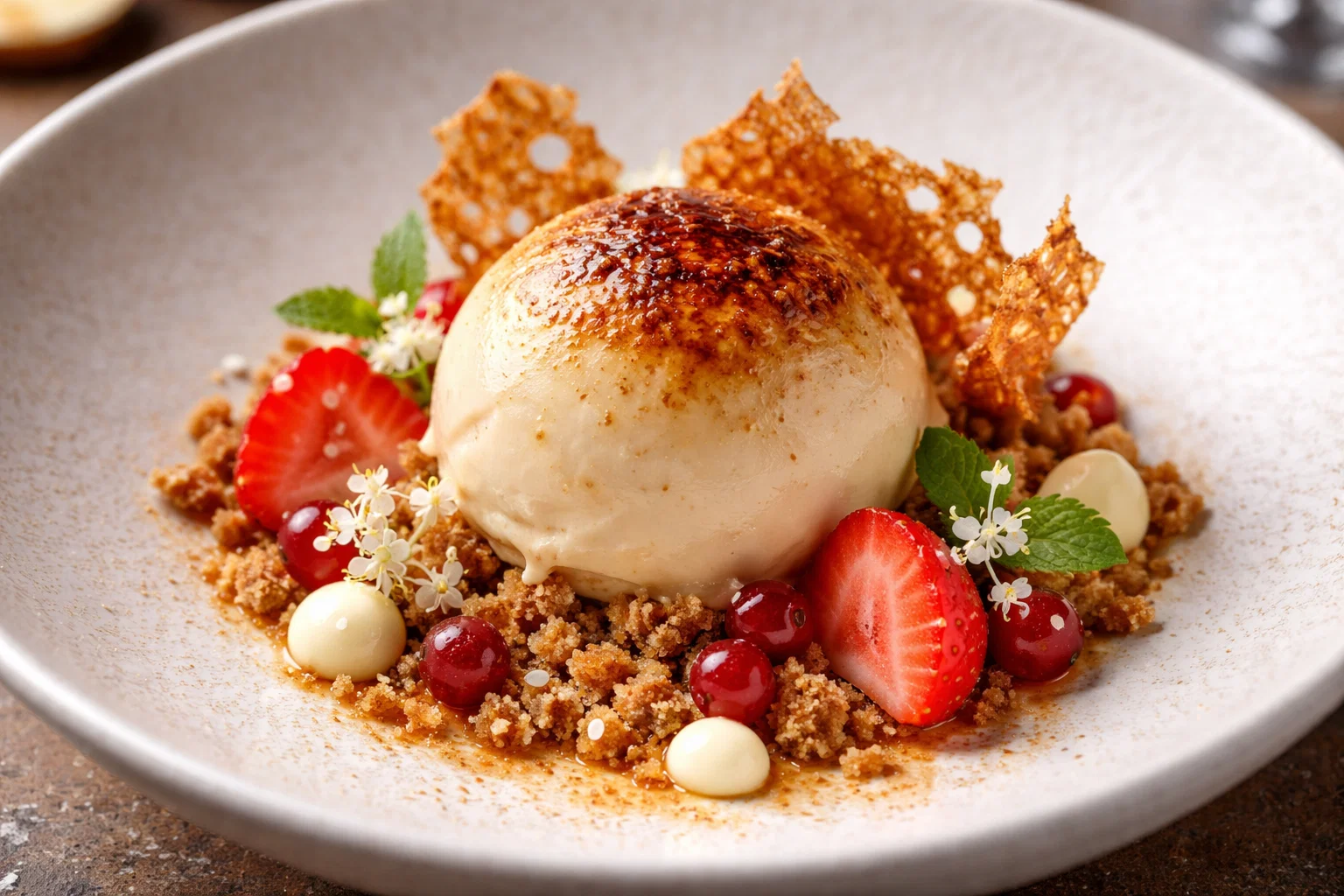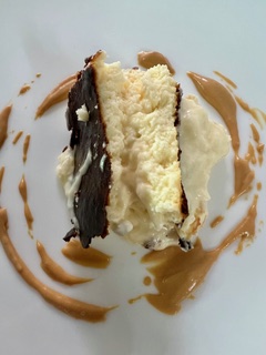 Torrija caramelizada y especiada, Sopa de Mango y Naranja, Helado de Queso de Oveja. (+3 euros)