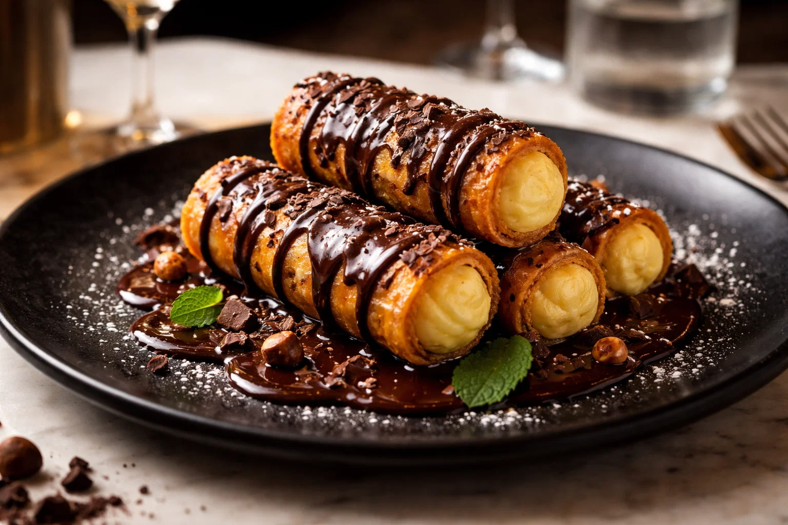 Canutillos fritos rellenos de Crema Pastelera. Chocolate amargo. (+3 euros)
